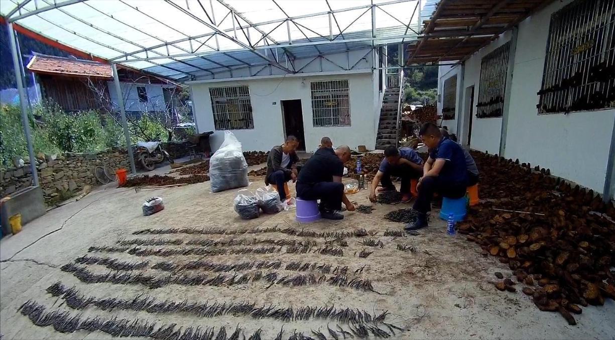 每次收购一定数量后,就摊在院子的水泥地上晾晒,直到完全风干,制成“干货”。