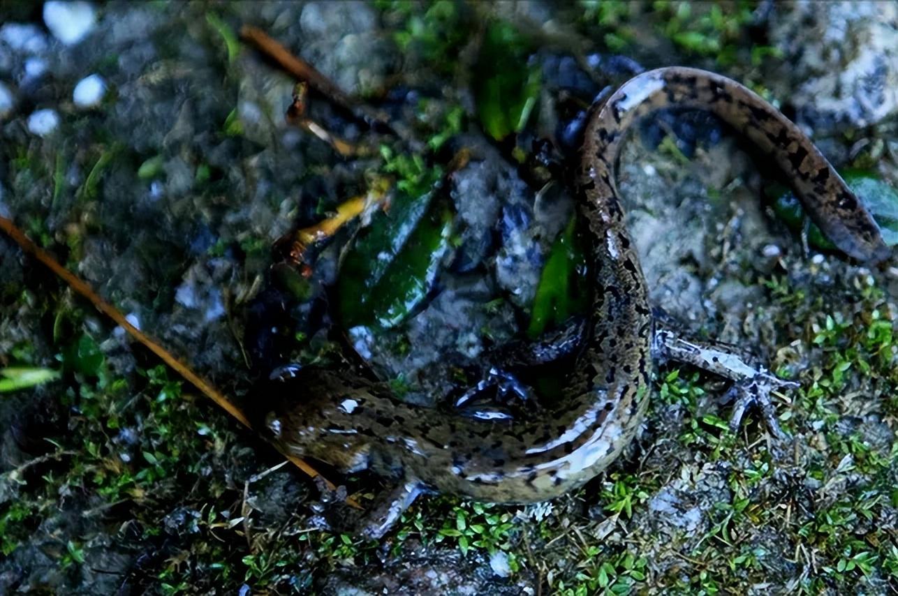 西藏山溪鲵是两栖动物,一辈子都离不开水或者潮湿的环境。
